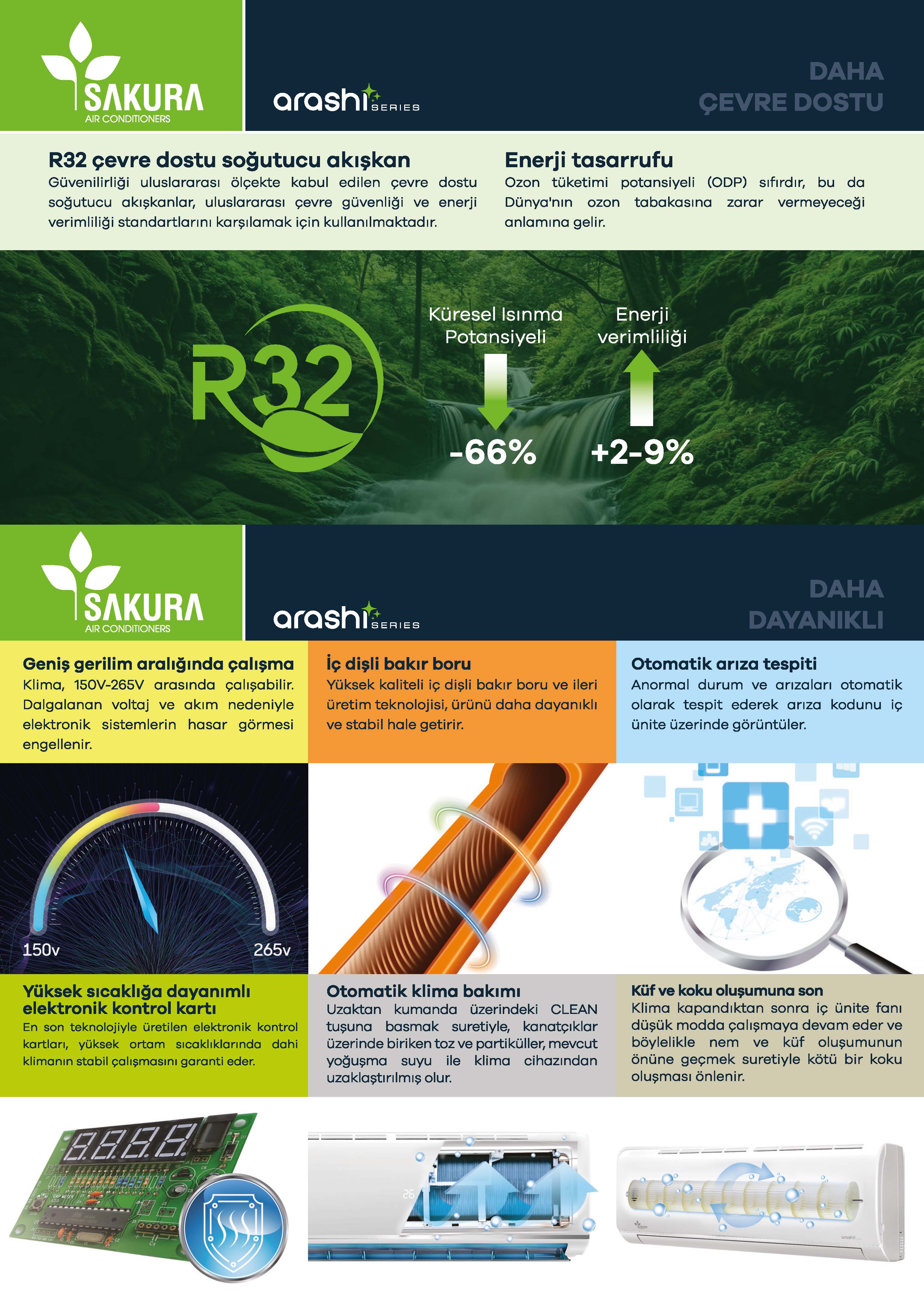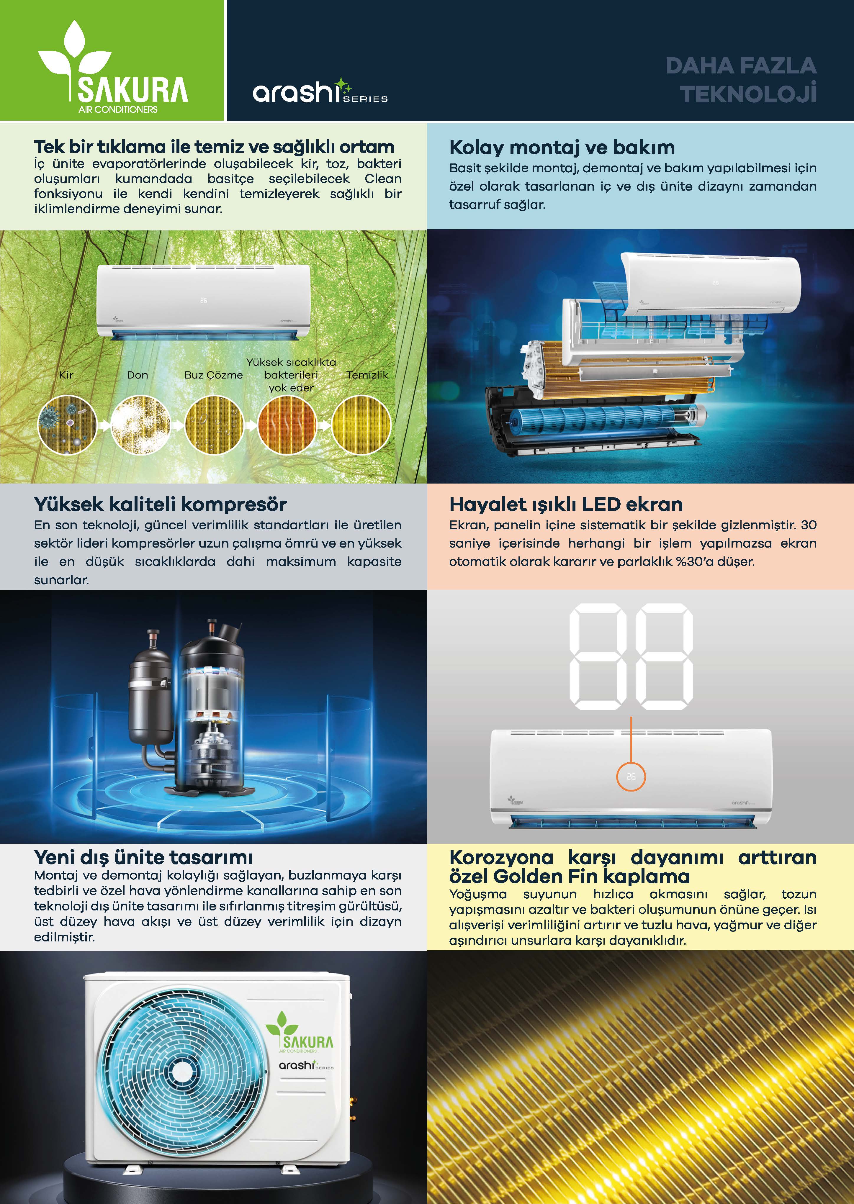 Split klimalar, özellikle ev ortamları ve küçük ölçekli ofisler için en çok tercih edilen klima modellerinin başında gelir. Sessiz çalışma prensibi sayesinde gece kullanımlarında bile rahatsızlık vermez, huzurlu bir ortam sağlar. Duvara monte edilen iç ünite, minimal tasarımı ile yaşam alanınızın estetiğini bozmazken, dış ünite ile birlikte güçlü bir soğutma ve ısıtma performansı sunar. Enerji verimliliği yüksek modeller sayesinde hem doğaya duyarlı bir kullanım elde edilir hem de elektrik faturalarında tasarruf sağlanır. Farklı kapasite seçenekleri ile ihtiyacınıza en uygun modeli kolaylıkla seçebilirsiniz.